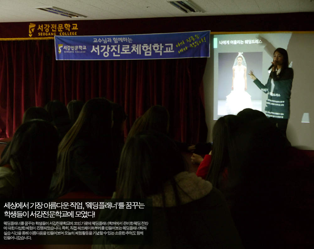 ¼¼»ó¿¡¼ °¡Àå ¾Æ¸§´Ù¿î Á÷¾÷, ¿þµùÇ÷¡³Ê¸¦ ²Þ²Ù´Â ÇлýµéÀÌ ¼°Àü¹®Çб³¿¡ ¸ð¿´½À´Ï´Ù. ¼°Àü¹®Çб³ ¿þµùÇà ·¡³ÊÇаú¿¡¼ ÁغñÇÑ Áø·ÎüÇèȰµ¿ ½Ã°£À» ÅëÇØ ¿þµù Àü¹Ý¿¡ ´ëÇÑ ´Ù¾çÇÑ Ã¼ÇèÀÌ ÁøÇàµÇ¾ú½À´Ï´Ù.